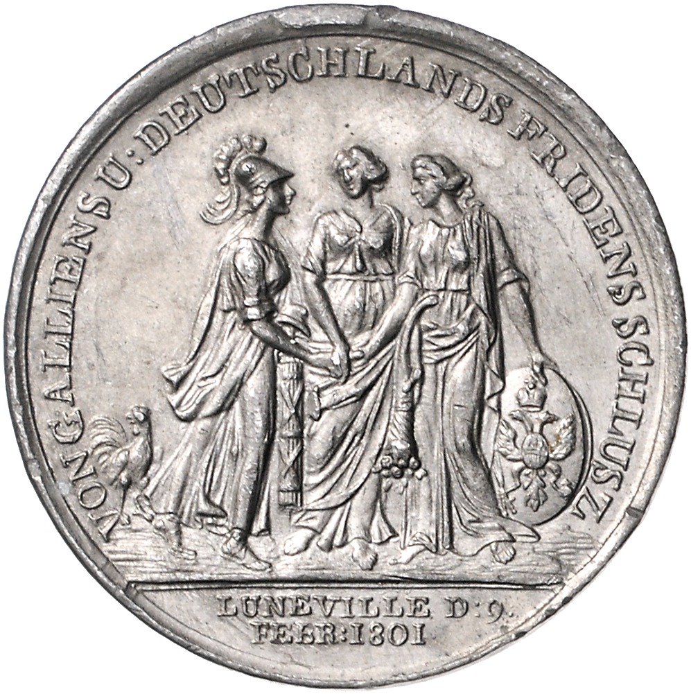 Weißmetallmedaille 1801 (v. Reich) auf den Frieden von Luneville. Bramsen 132. Slg. Jul. 939. 42,8 mm, 35,22 g. f.vz