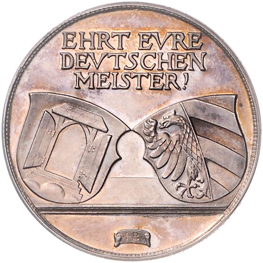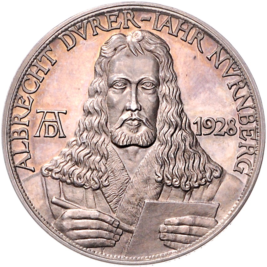 Silbermedaille 1928 (v. I.B. =Bernhart) auf den 400. Todestag von Albrecht Dürer, i.Rd: BAYER. HAUPTMÜNZAMT SILBER 900 f. Erlanger 994. 36,6 mm, 24,77 g. PP