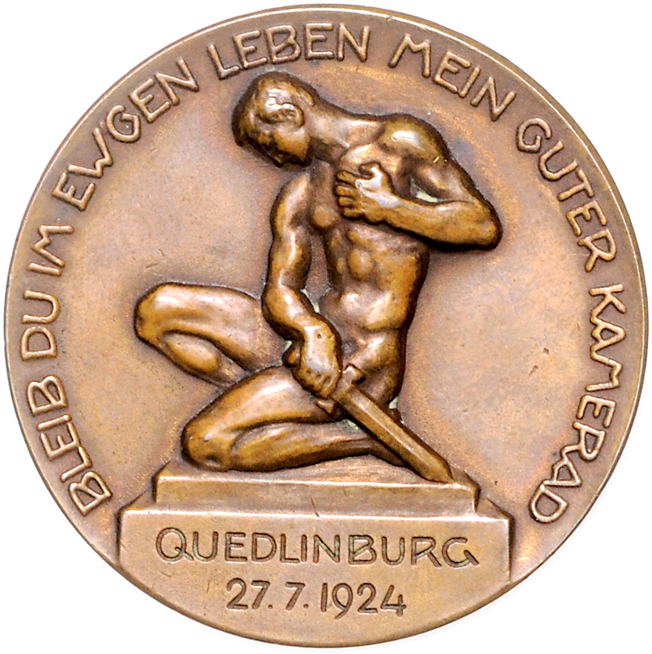 Lot von 2 Stücken: Bronzemedaille 1924 (unsign.) auf die 3600 gefallenen Soldaten des Inf. Regiments (40,6mm 27,07g) | Bronzemedaille 1924 (unsign.) auf den 200. Geburtstag des Dichters Friedrich Gottlieb Klopstock (45,1mm 35,64g). vz