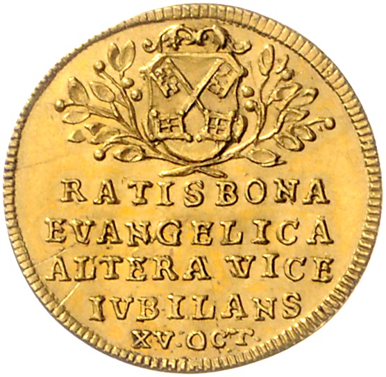Dukat 1742 auf die 200-Jahrfeier der Reformation. Slg. Whiting 485, Friedberg 2519a. 23,5 mm, 3,49 g. vz+