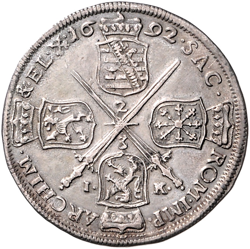 Johann Georg IV. 1691-1694. 2/3 Taler 1692 IK Dresden. Clauss/Kahnt 661, Davenport 812, Kohl 317. ss