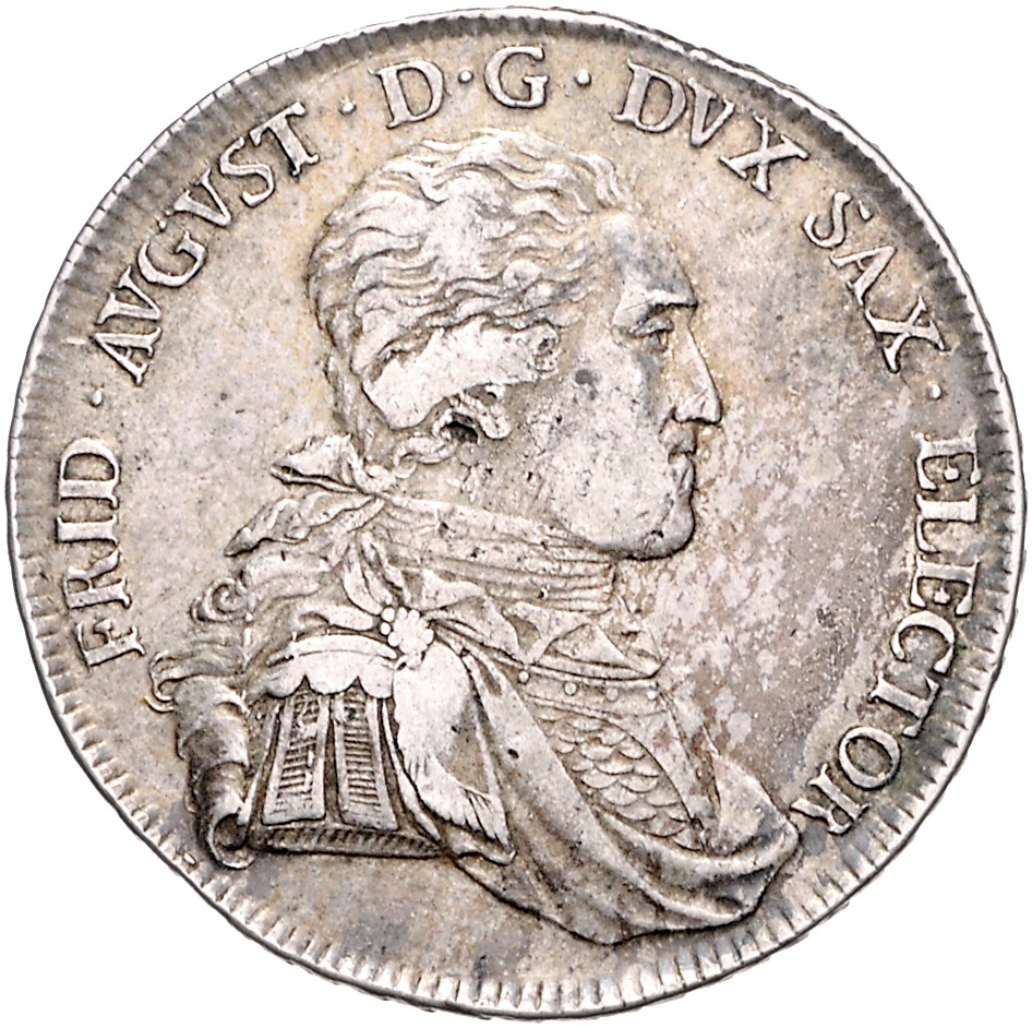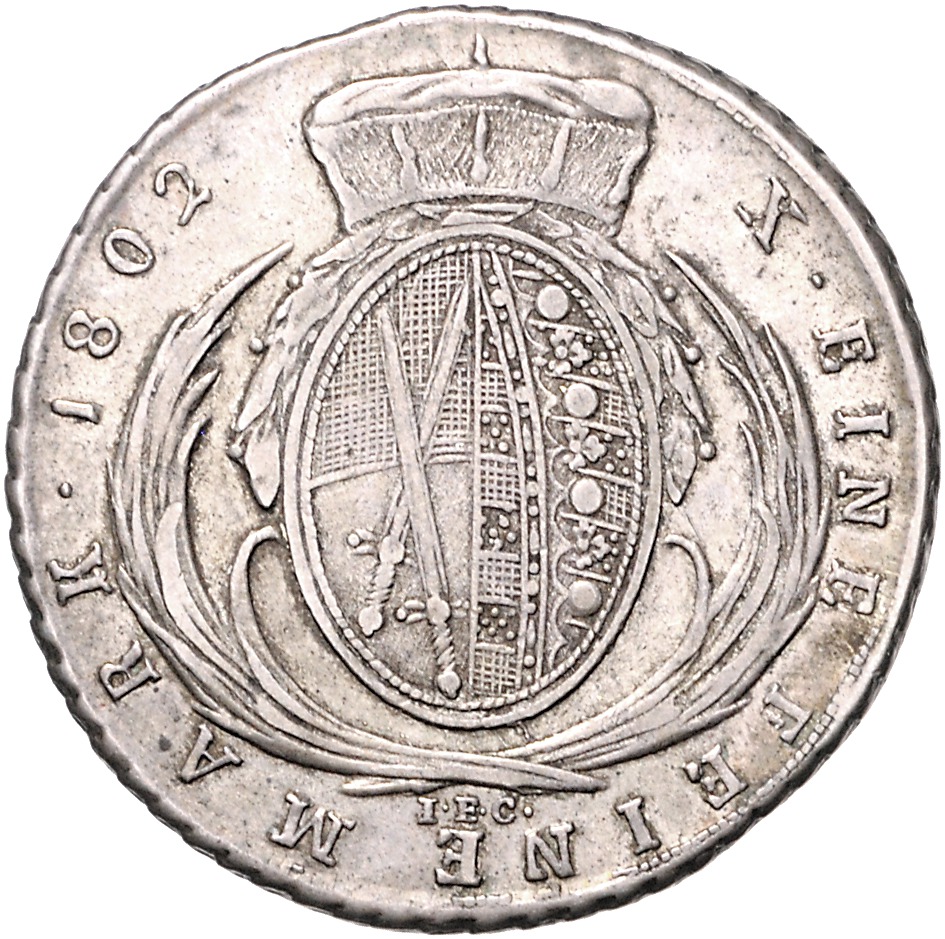 Friedrich August III. 1763-1806. Konventionstaler 1802 IEC. Kahnt 411, Davenport 850, Thun 289, Buck 211. etwas unregelmäßige Patina. ss+