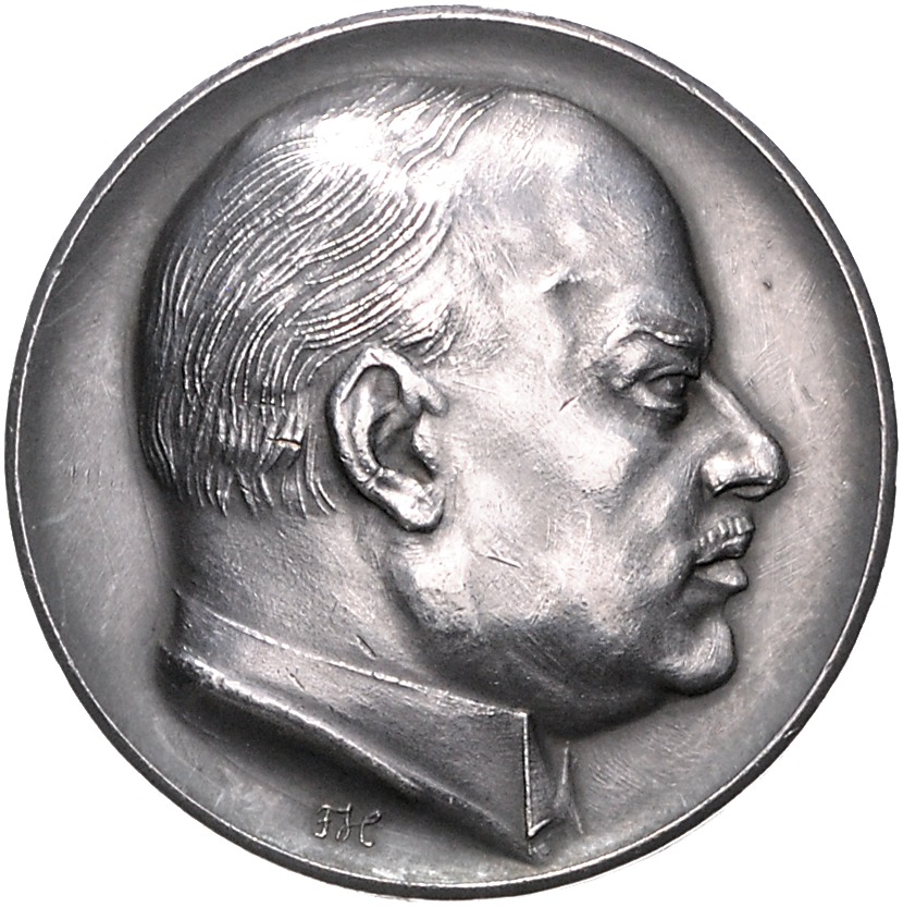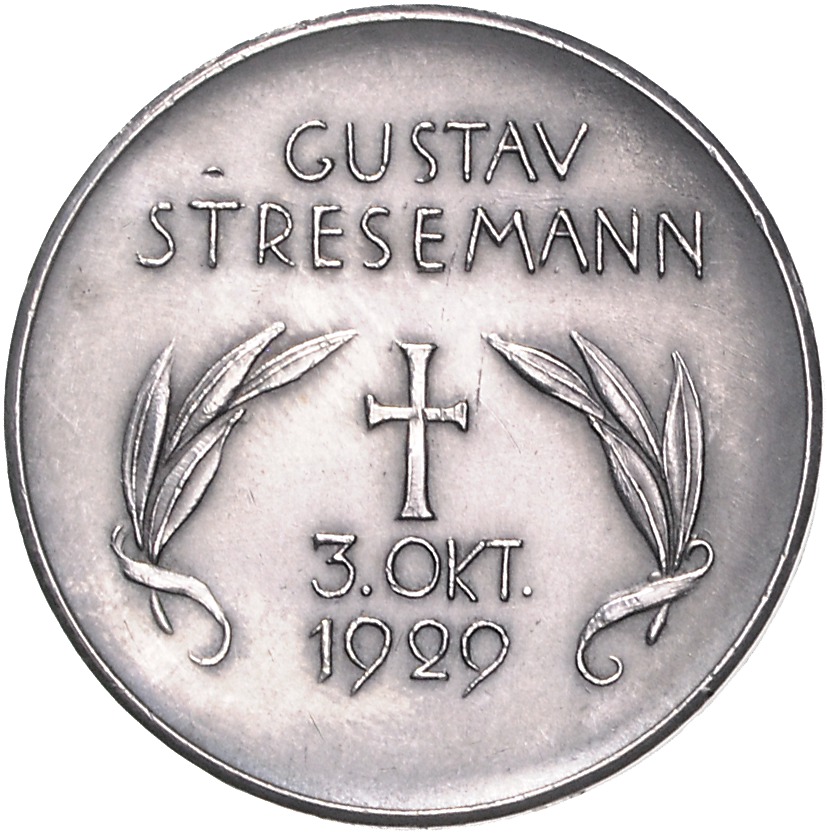 Silbermedaille 1929 auf den Tod von Gustav Stresemann, i.Rd: SÄCHS. M. 999. AFA 223. Auflage 102 Exemplare. 35,7 mm, 19,80 g. vz