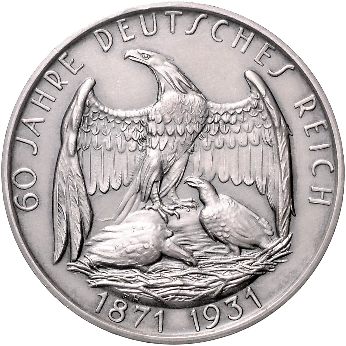 Silbermedaille 1931 Bismarck / 60 Jahre Deutsches Reich, i.Rd: SÄCHS. M. 999. AFA 250. Auflage 64 Exemplare, mattiert 50,7 mm, 39,32 g. vz-st