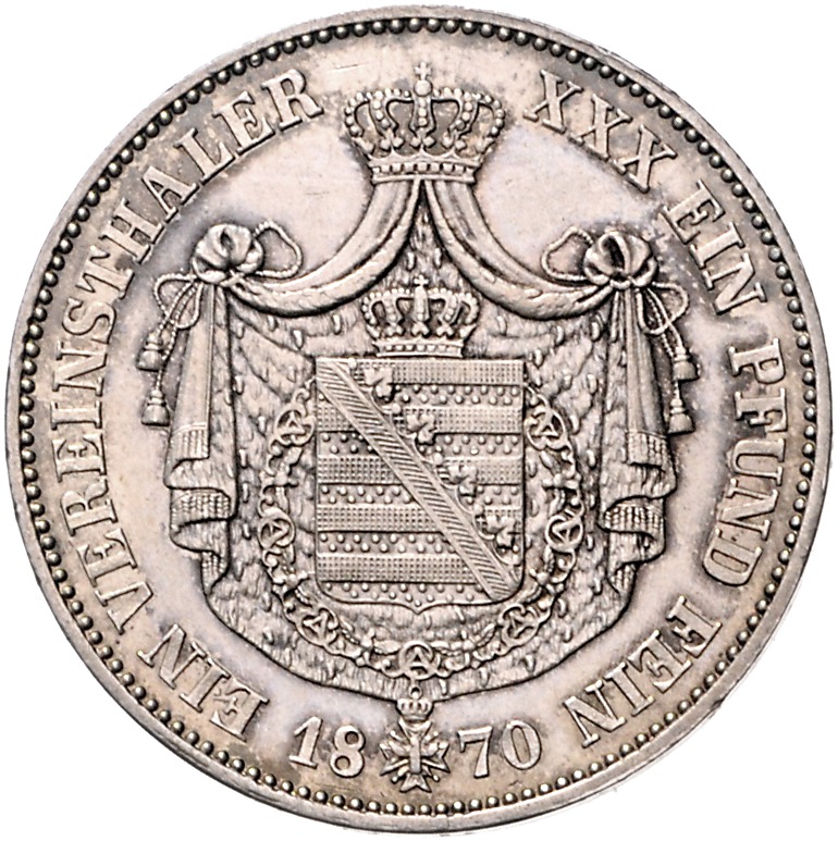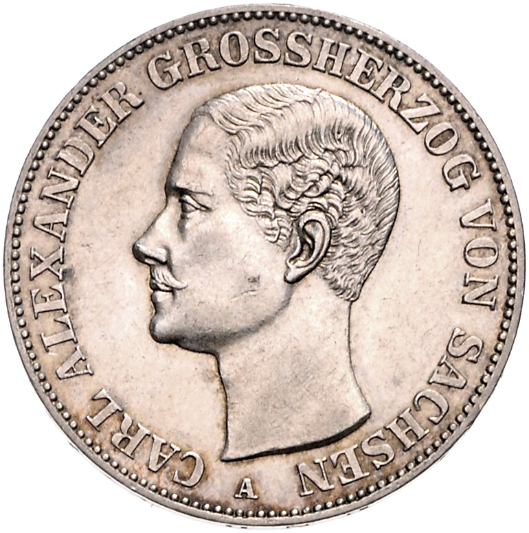 Carl Alexander 1853-1901. Vereinstaler 1870. Kahnt 516, Davenport 847, AKS 33, Thun 386. f.vz