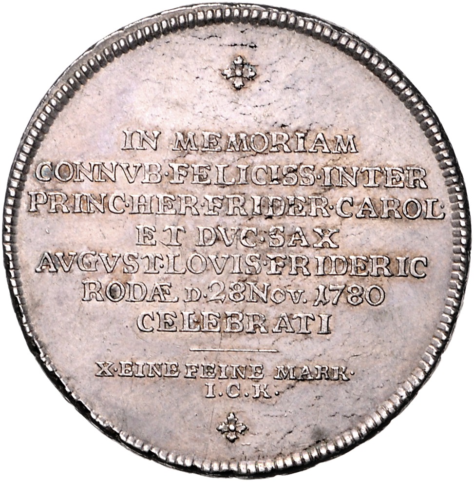 Ludwig Günther II. 1767-1790. Taler 1780 I.C.K. auf die Vermählung seines Sohnes. Davenport 2770. vz-st