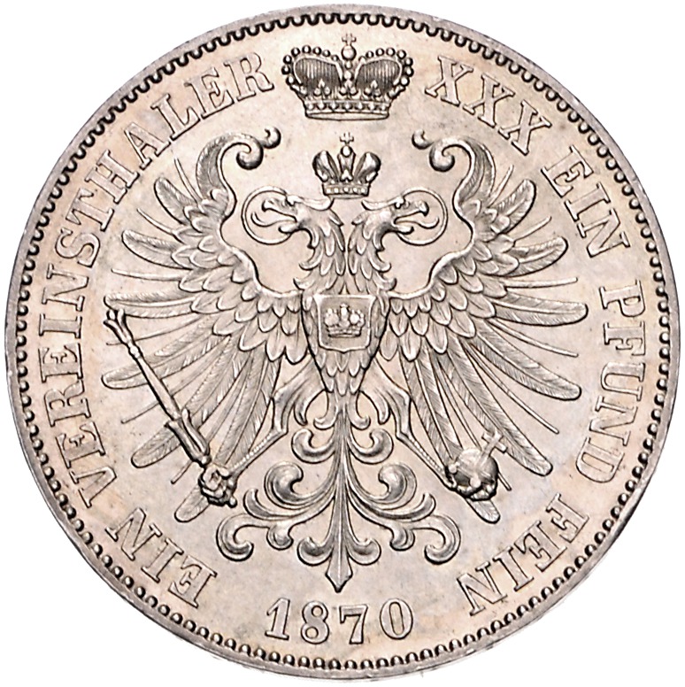 Günther Friedrich Karl II. 1835-1880. Vereinstaler 1870. Kahnt 541, Davenport 921, AKS 38, Thun 400. kl. Kr. vz