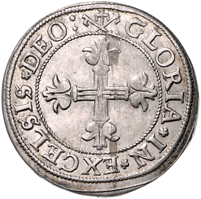 12 Kreuzer (um 1623) Lilie im Kreis ASSIS REIP ARGENT DVPLEX / Blumenkreuz GLORIA IN EXCELSIS DEO. EuL 474. 5,20 g. vz