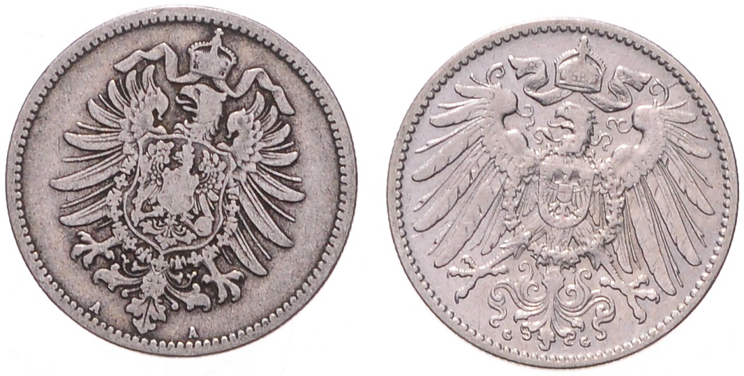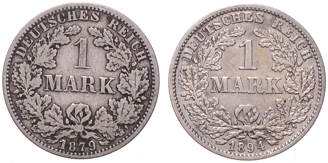 Lot von 2 Stücken: 1 Mark 1879 A und 1894 G. Jaeger 9,17. ss