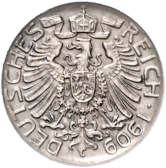 25 Pfennig 1909 Motivprobe: Adler mit Umschrift / Weibliche Allegorie. Jaeger zu 18, Schaaf 18G41. Nickellegierung, sehr selten 5,70 g. vz