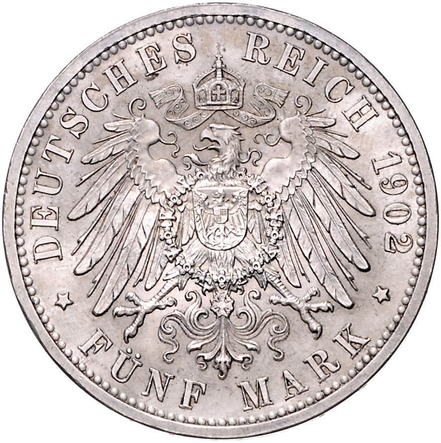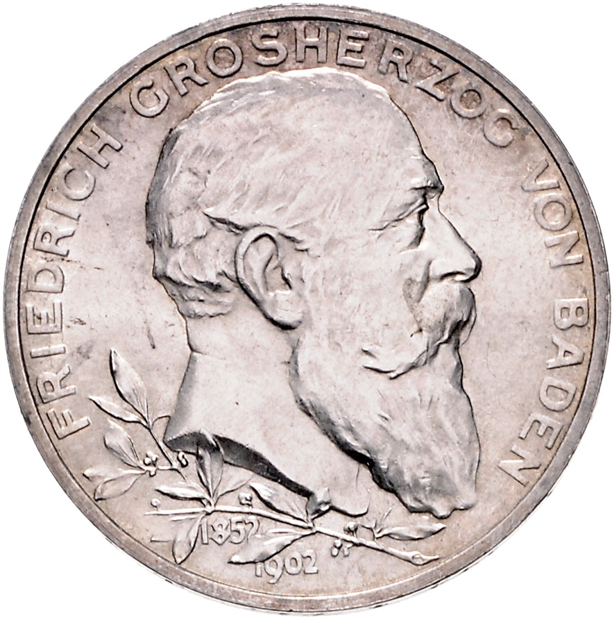 Friedrich I. 1856-1907. 5 Mark 1902 (G) Zum 50-jährigen Regierungsjubiläum. Jaeger 31. vz-st