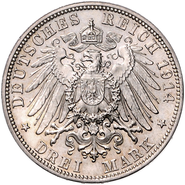 Ludwig III. 1913-1918. 3 Mark 1914 D. Jaeger 52. f.st/st