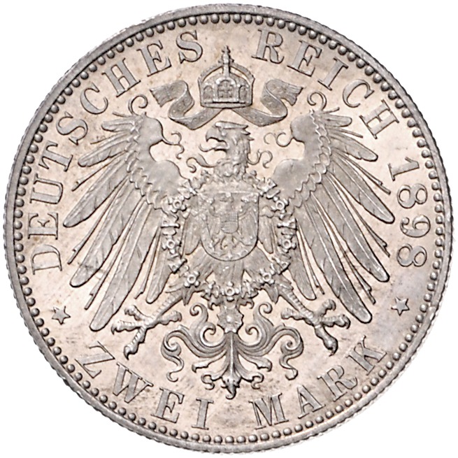 Ernst Ludwig 1892-1918. 2 Mark 1898 A. Jaeger 72. vz-st/st