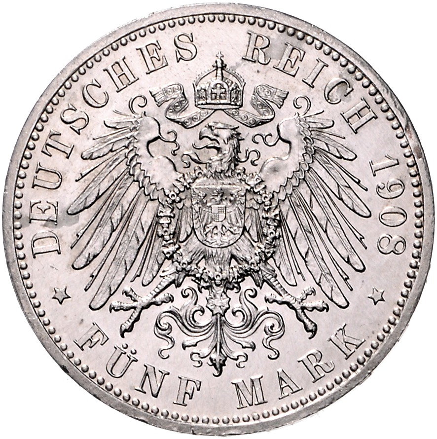 5 Mark 1908 A. Jaeger 83. winz. Rf. vz+