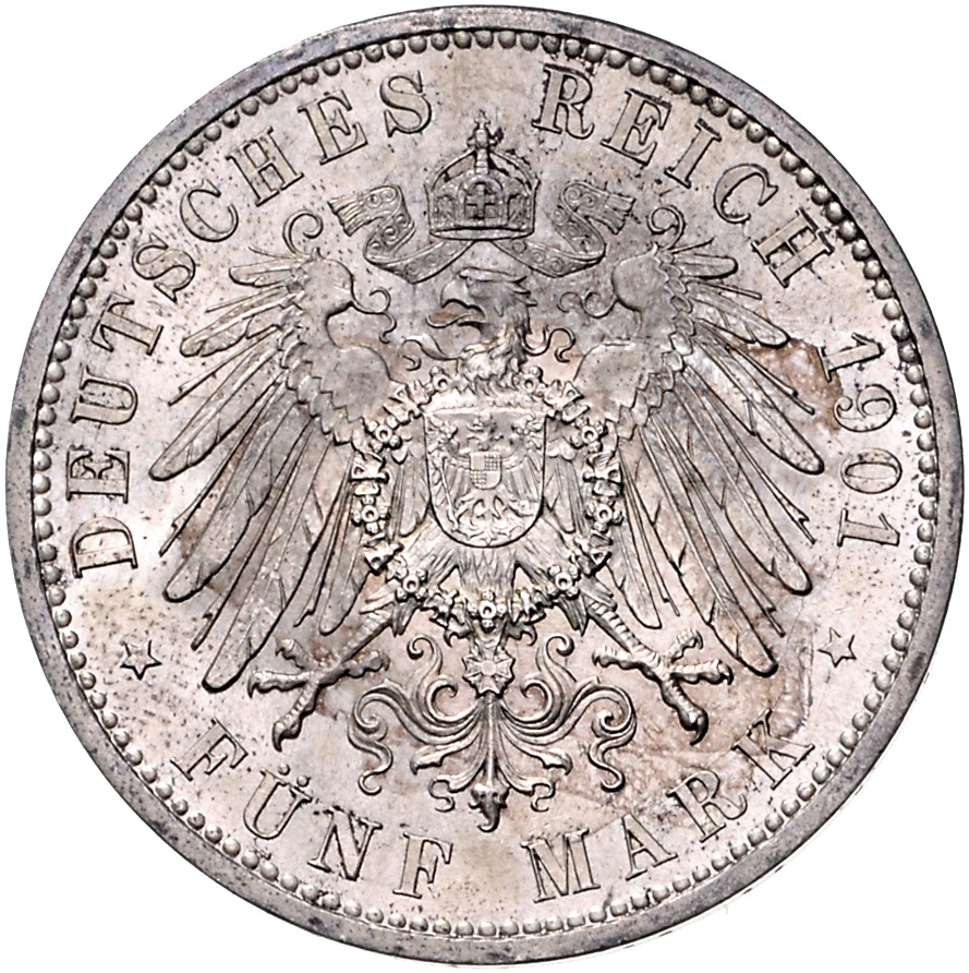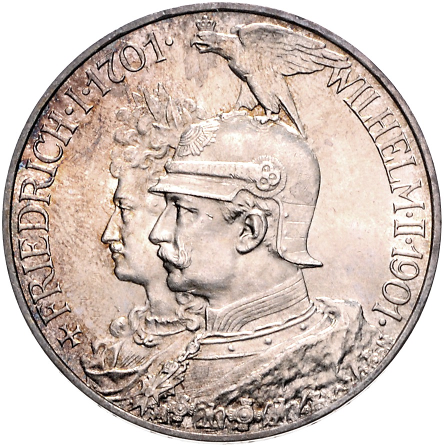 Wilhelm II. 1888-1918. 5 Mark 1901 (A) Zum 200-jährigen Bestehen des Königreichs. Jaeger 106. vz/vz-st