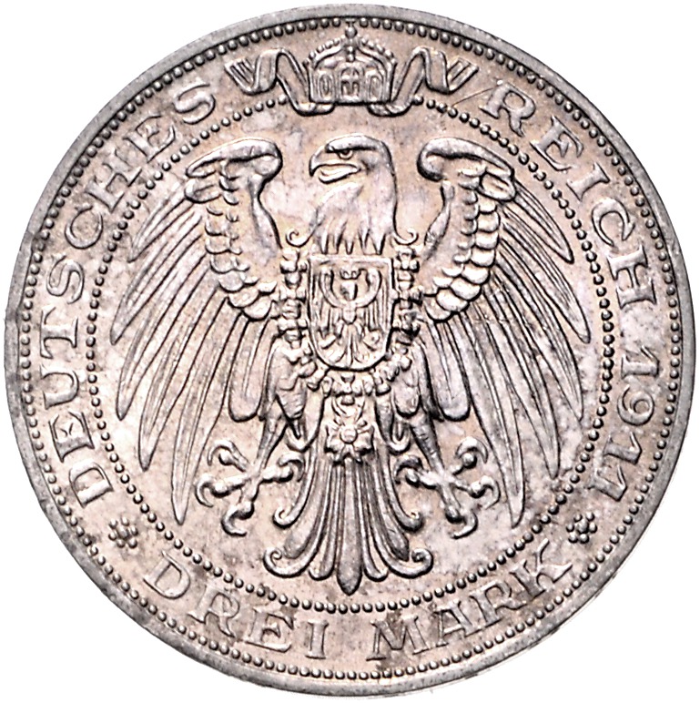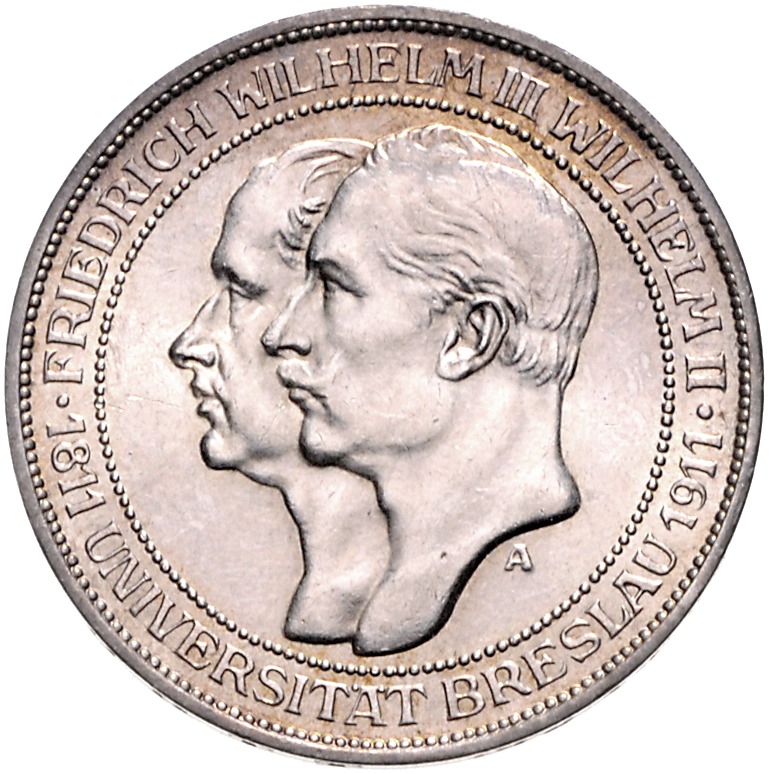 Wilhelm II. 1888-1918. 3 Mark 1911 A Zur Jahrhundertfeier der Universität Breslau. Jaeger 108. vz-st