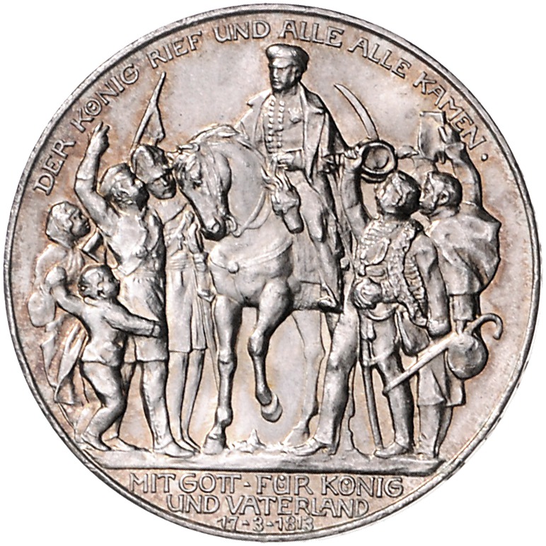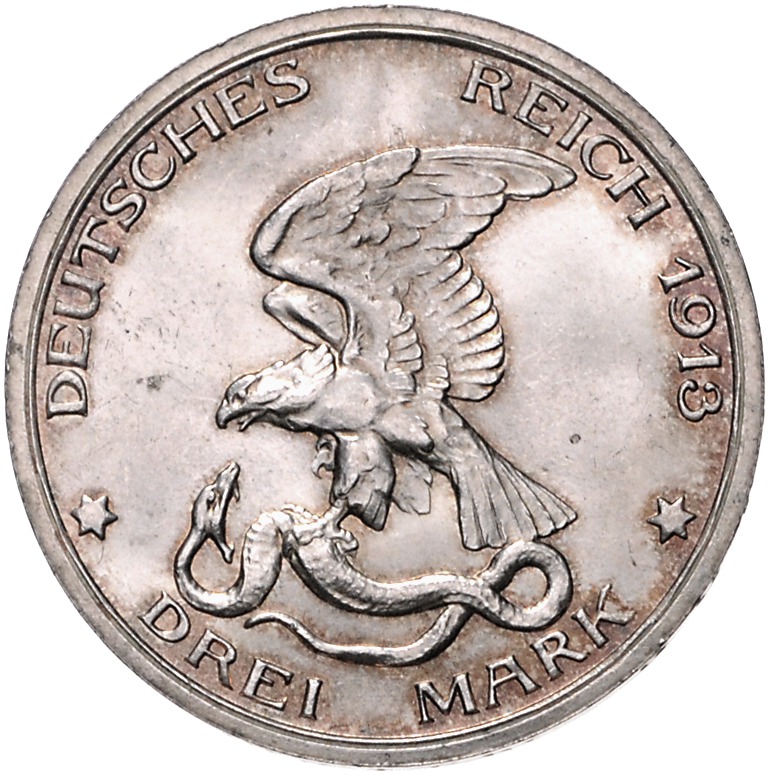 Wilhelm II. 1888-1918. 3 Mark 1913 Zur Jahrhundertfeier der Befreiungskriege gegen Frankreich. Jaeger 110. f.st