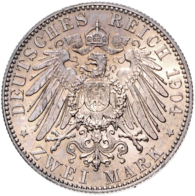 Georg 1902-1904. 2 Mark 1904 E Auf den Tod des Königs. Jaeger 132. vz/f.st