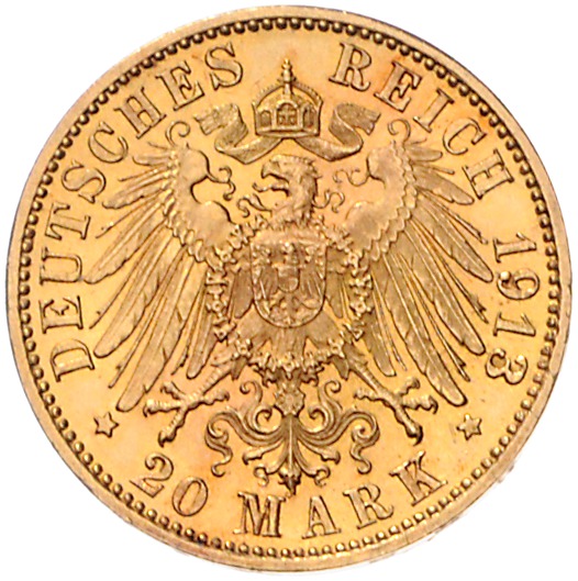 Friedrich August III. 1904-1918. 20 Mark 1913 E. Jaeger 268. Kr. auf Vs. vz