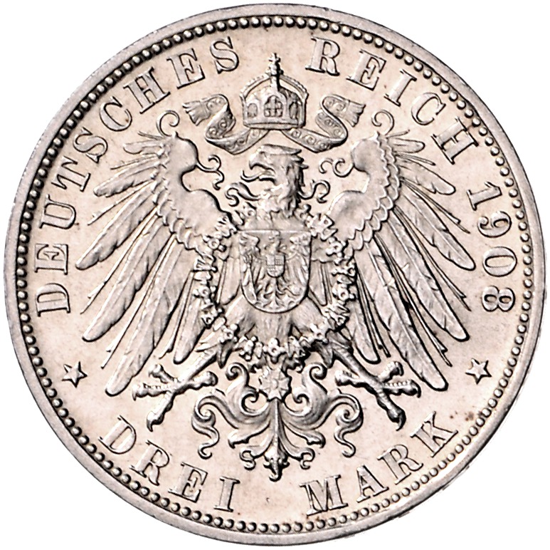 Georg II. 1866-1914. 3 Mark 1908 D. Jaeger 152. vz+/f.st