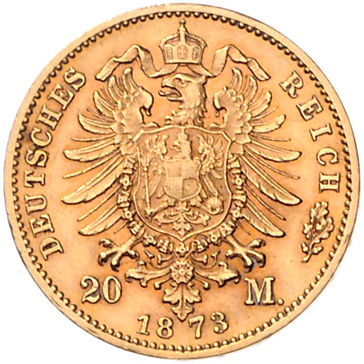 Karl 1864-1891. 20 Mark 1873 F. Jaeger 290. vz+