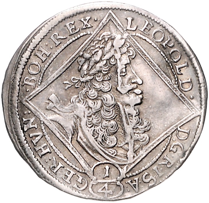 Leopold I. 1657-1705. 1/4 Taler 1704. Popelka CNA 115-h-9. schöne Patina, sehr selten. vz