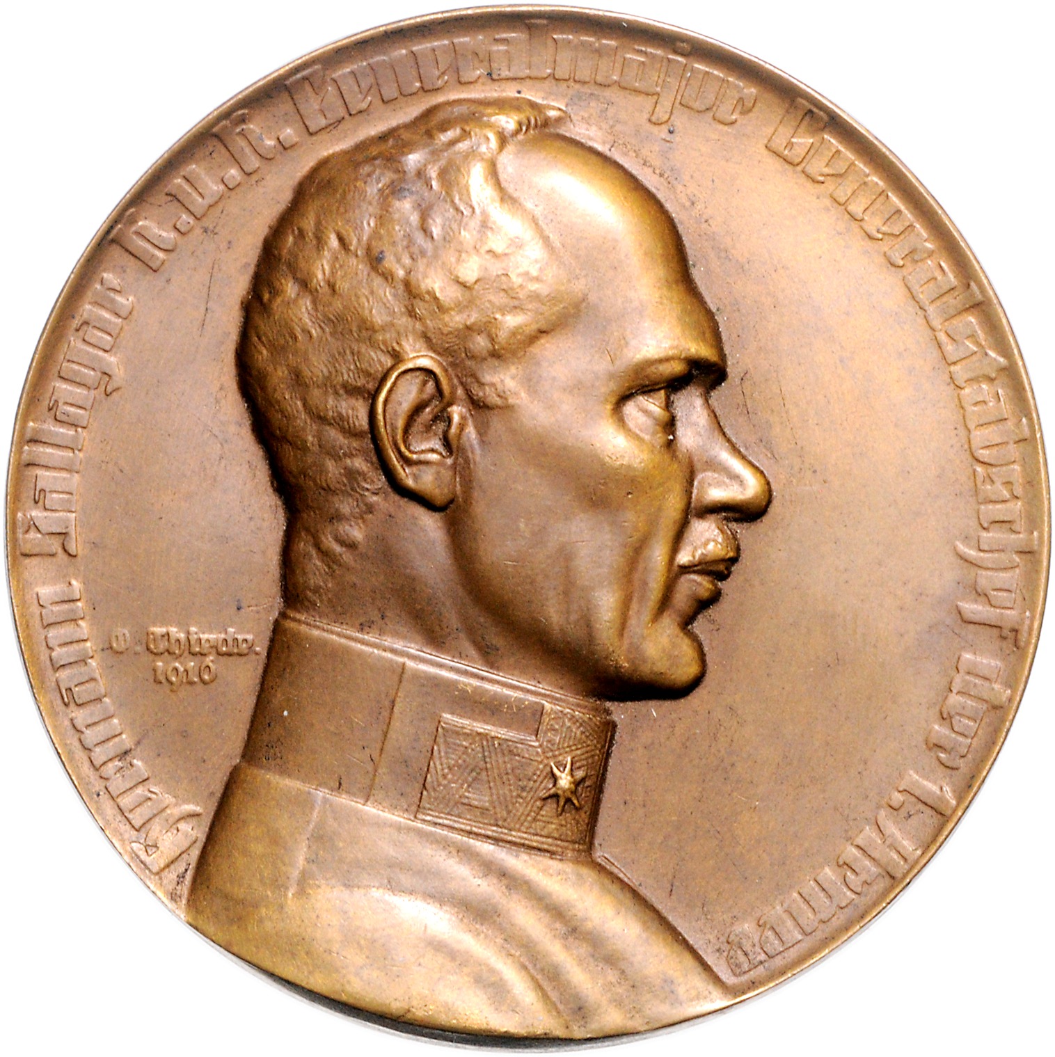 Franz Joseph I. 1848-1916. Bronzemedaille 1915 (v. Thiede 1916) auf Generalmajor Hermann Sallagar, ausgegeben vom Kriegsfürsorgeamt. Hauser 7796. 65,5 mm, 113,96 g. vz
