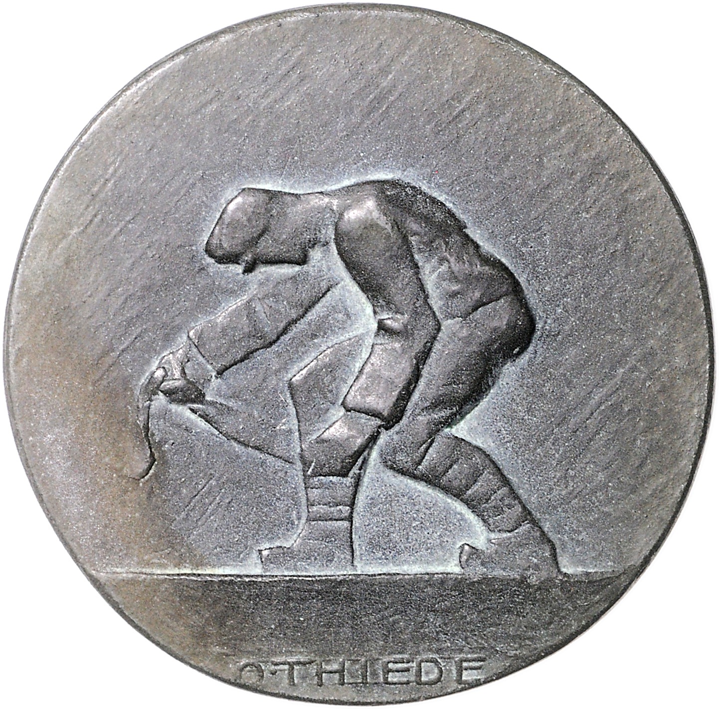 Erzherzog Karl I. 1916-1918. Einseitige Zinkgussmedaille o.J. (v. Thiede) `Kurze Rast`. Unedierter Probeentwurf, mit rückseitig aufgeklebtem Preiszettel in Höhe von 60 RM !!. selten 61,3 mm, 59,94 g. f.vz