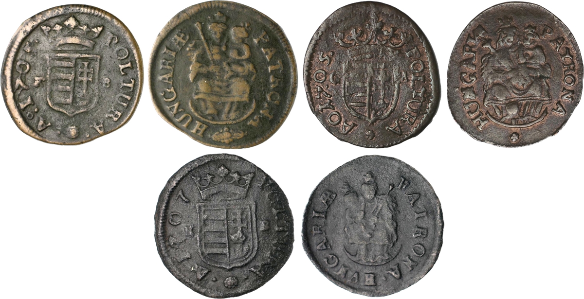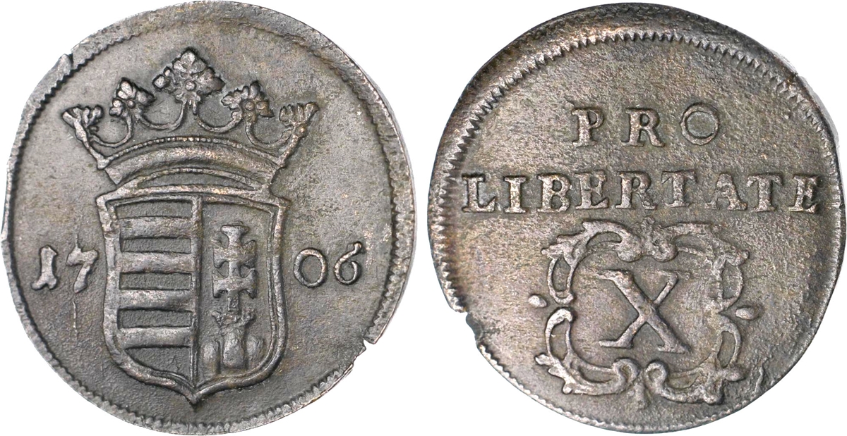 Ungarische Malkontenten 1703-1707. Lot von 4 Stücken: Poltura 1705 KB, 1705 CM, 1707 KB Patrona Hungariae und X Polturen 1706. Herinek 31,33,38,26. kl. Sf. ss und f.vz