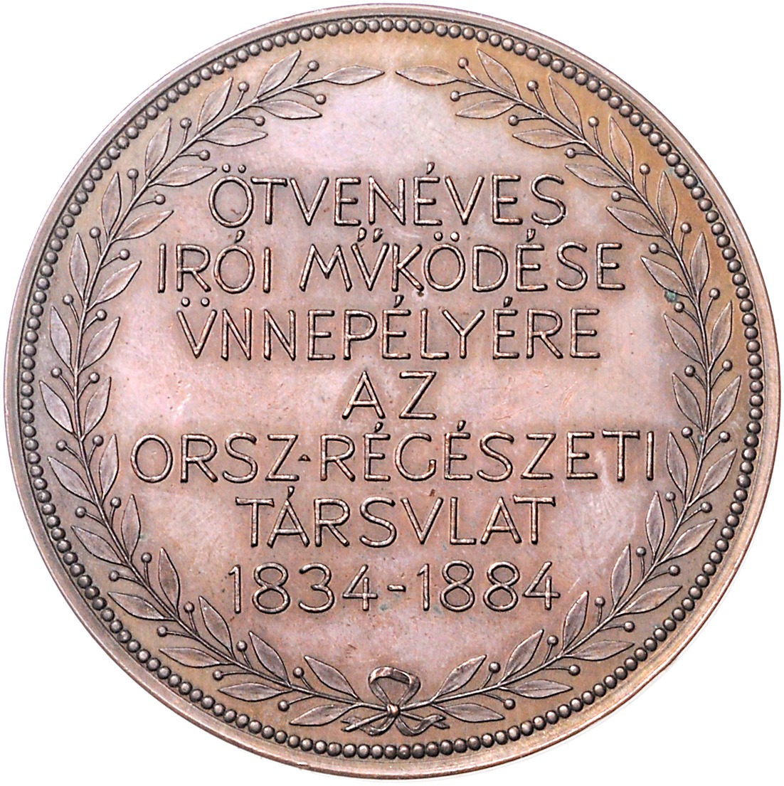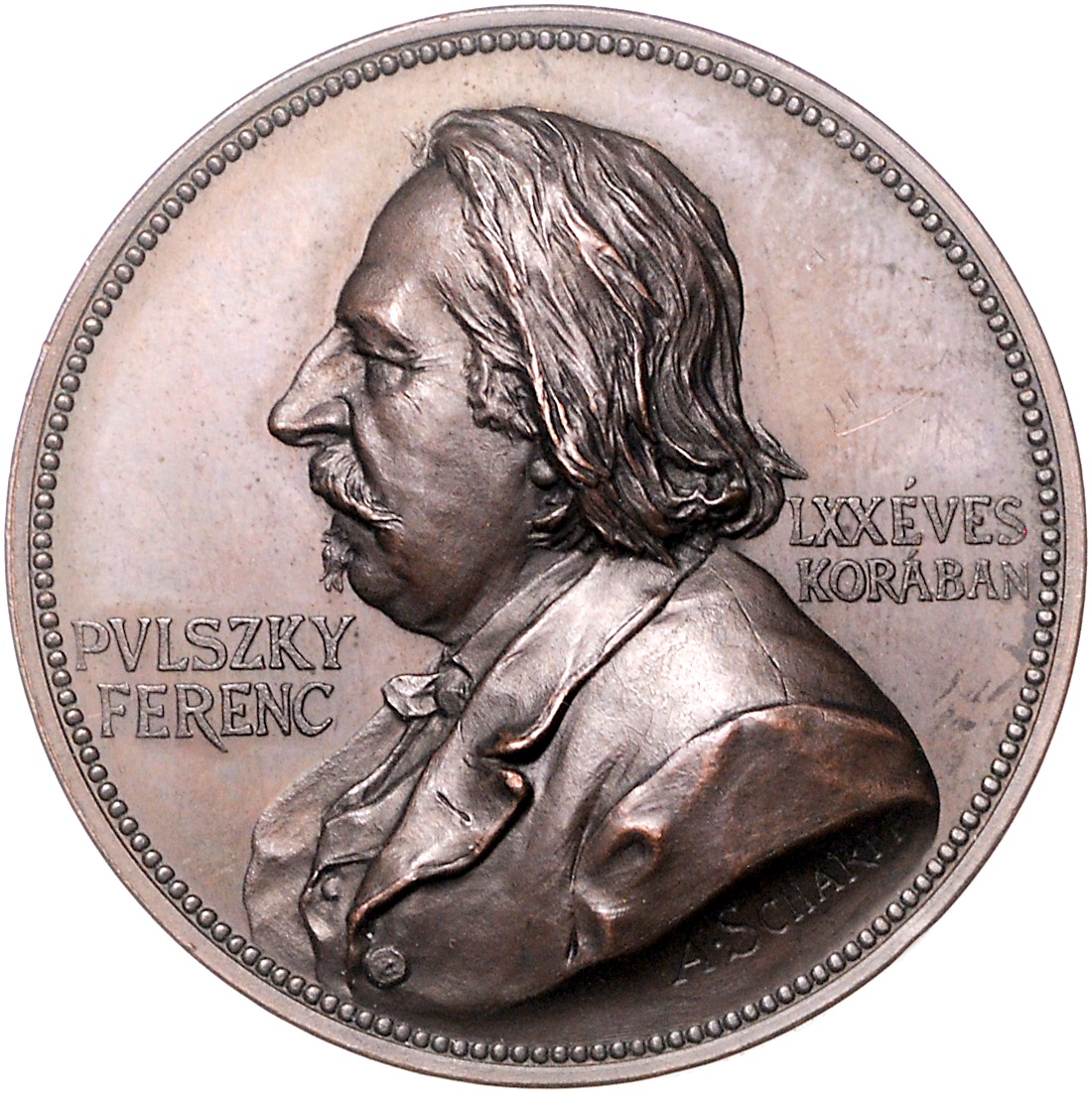 Bronzemedaille 1884 auf den 70. Geburtstag von Pulsky Ferenc (1814-1897), gewidmet von der arch. Gesellschaft Ungarns. Hauser 7738, Wurzbach 7726. winz. Rf. 47,3 mm, 49,90 g. vz-st