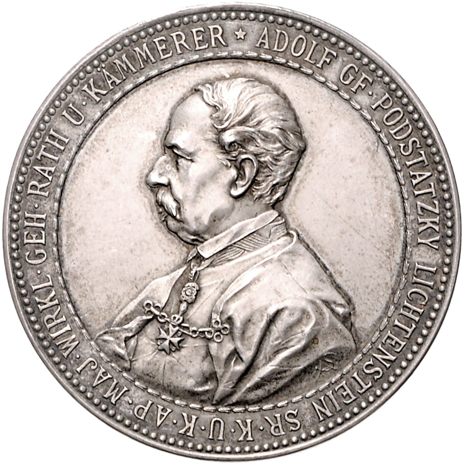 Silbermedaille 1885 auf den 80. Geburtstag des Grafen Adolf Podstaty-Lichtenstein. Hauser 7543. 39,1 mm, 22,09 g. vz