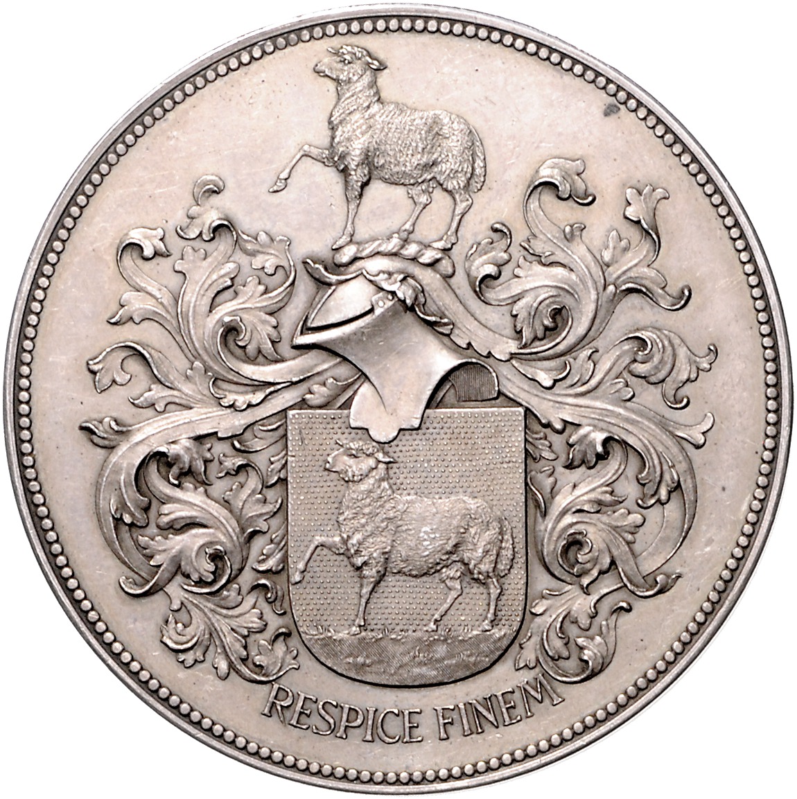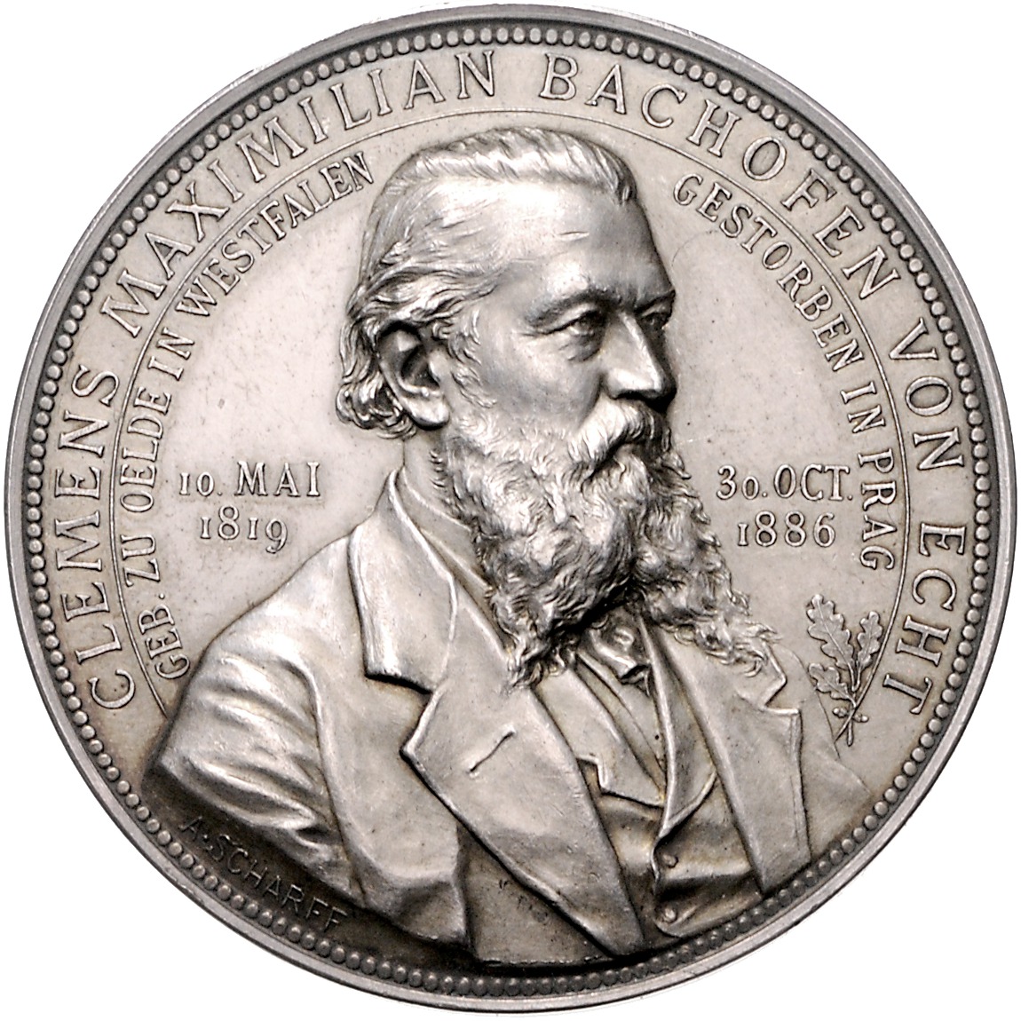 Silbermedaille 1886 auf den Tod von Clemens Maximilian Bachofen von Echt. Hauser 7174, Loehr 123. Prüfspur im Rand, Kr. u. Rf. 49,6 mm, 58,56 g. f.vz