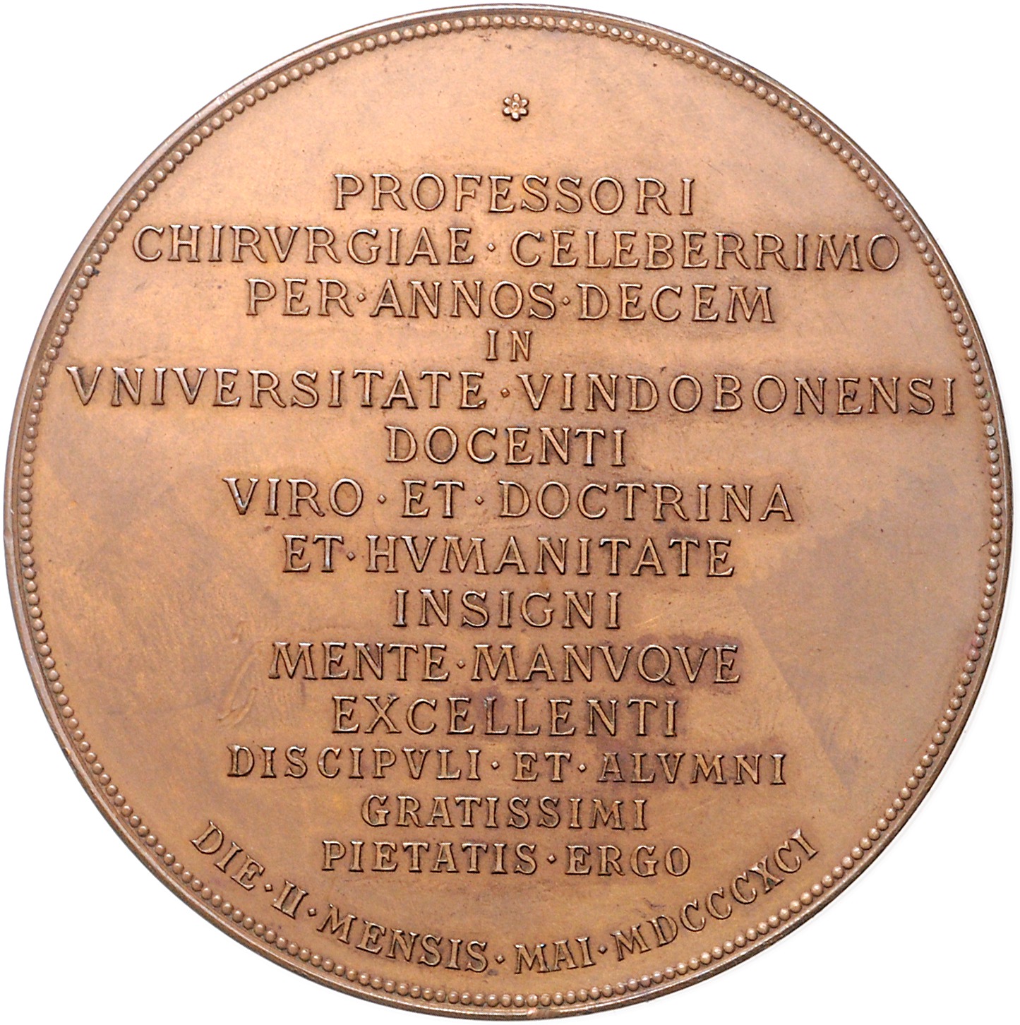 Bronzemedaille 1891 auf das 10-jährige Jubiläum Eduard Alberts als Professor der Chirurgie an der Universität Wien. Hauser 7148, Loehr 196, Wurzbach 44, Slg. Brettauer 14. 62,7 mm, 87,64 g. vz+