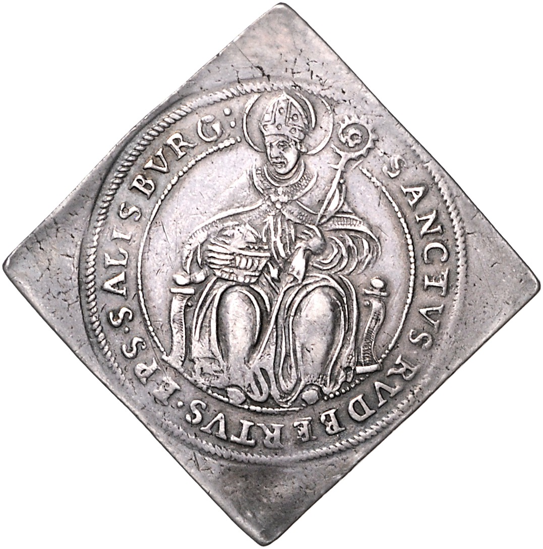 Wolf Dietrich von Raitenau 1587-1612. 1/2 Talerklippe o.J. Probszt 832, Zöttl 984. kl. Hklsp. ss-vz