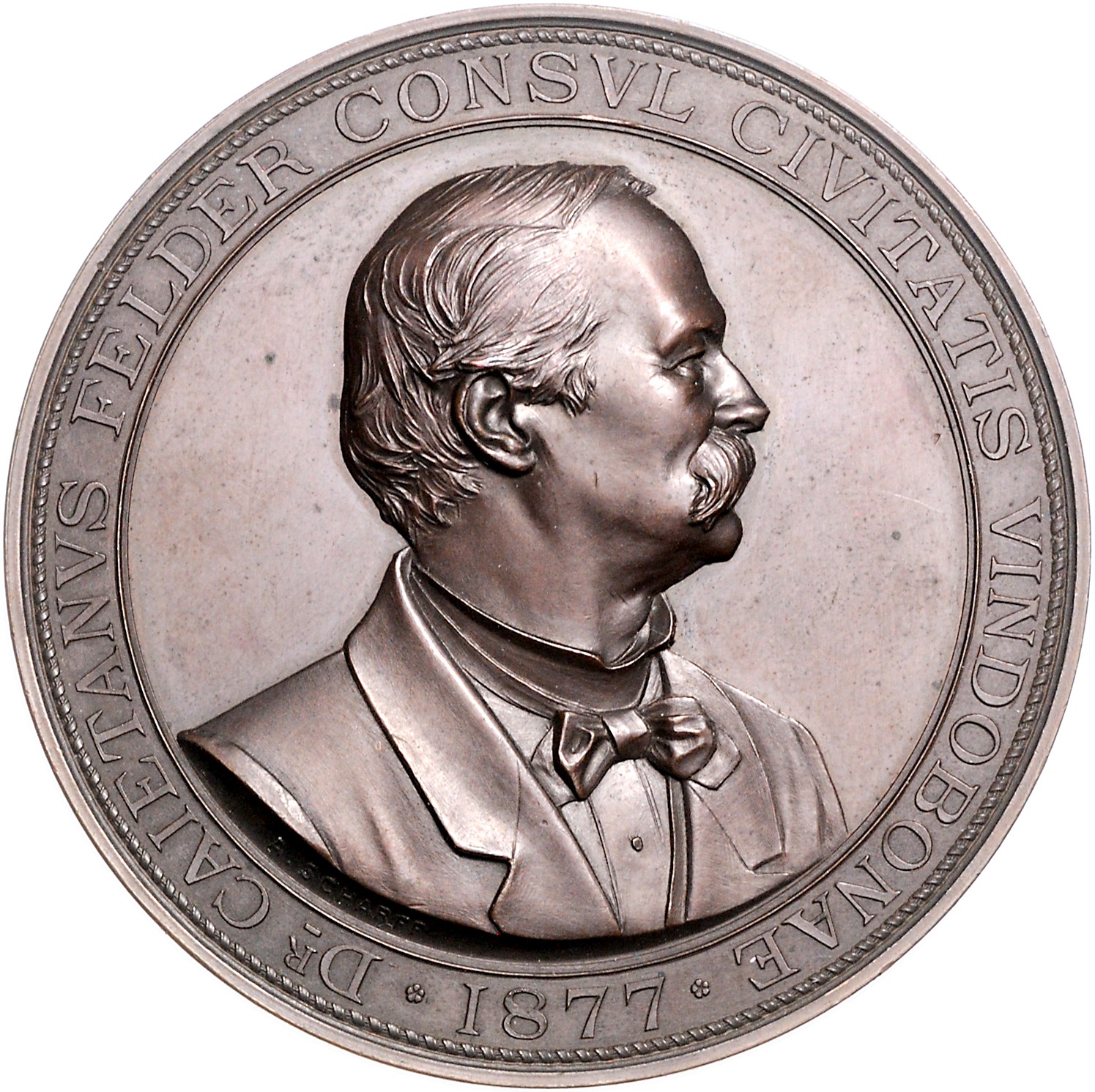 Bronzemedaille 1877 auf die Wiederwahl des Wiener Bürgermeisters Cajetan Felder. Hauser 7345, Wurzbach 1992. 64,3 mm, 94,01 g. vz