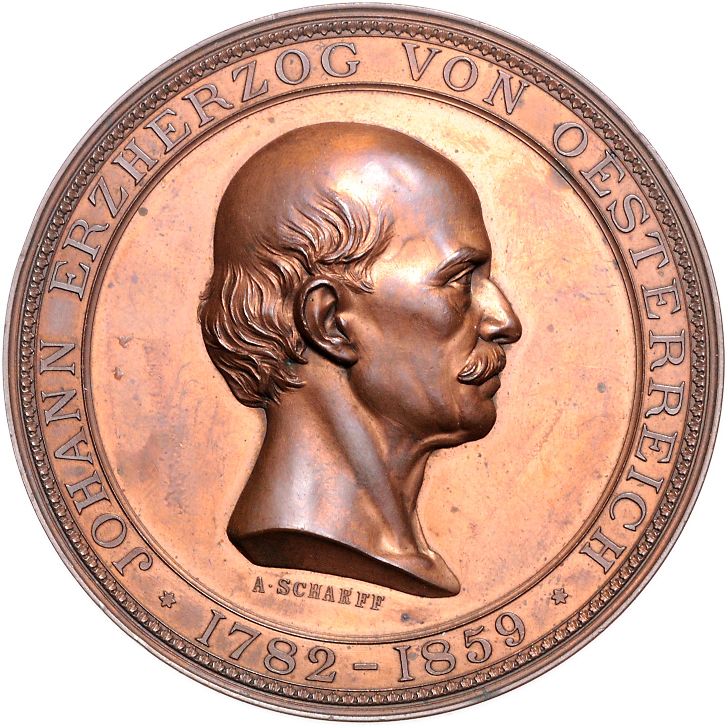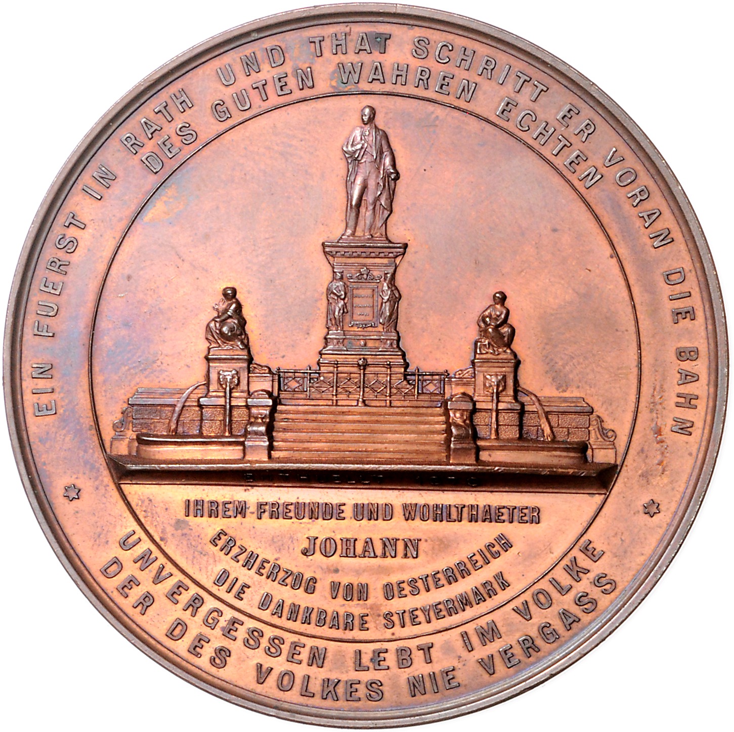 Bronzemedaille 1878 auf die Enthüllung des Denkmals für Erzherzog Johann in Graz. Hauser 2305, Loehr 32, Wurzbach 4023. 62,3 mm, 97,42 g. vz
