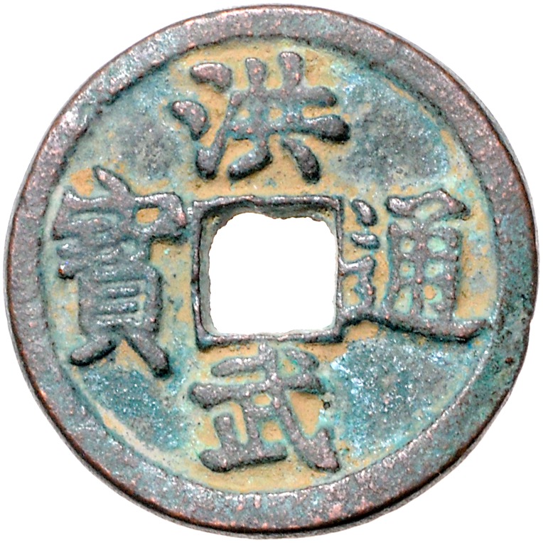 Hongwu 1368-1398. 3 Cash o.J. Hartill 20.86. grüne Patina. ss