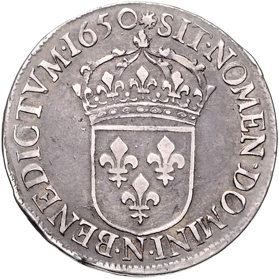 Ludwig XIV. 1643-1715. Ecu 1650 N -Montpellier. Davenport 3799, Duplessy 1461. ss