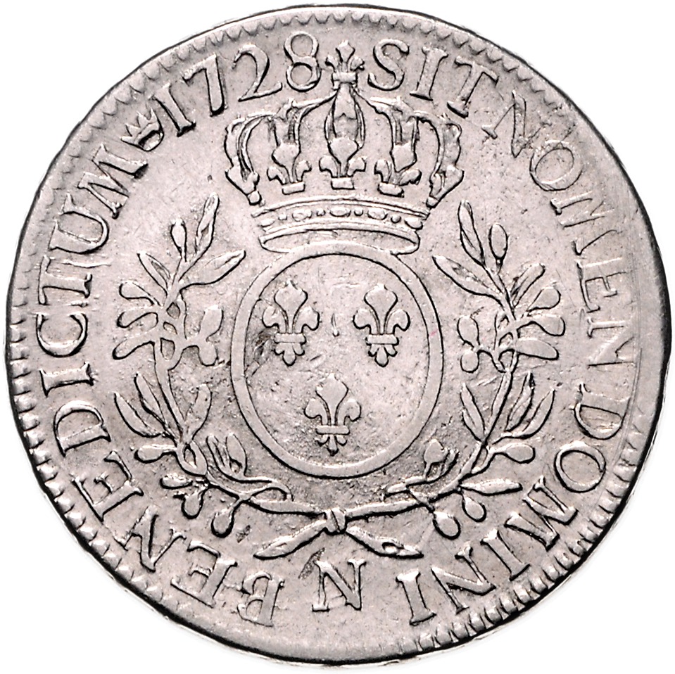 Ludwig XV. 1715-1774. Lot von 2 Stücken: Ecu 1761 L-Bayonne | 1728 N-Montpellier. K.M. 486.14,512.12, Gadoury 322,321. ss