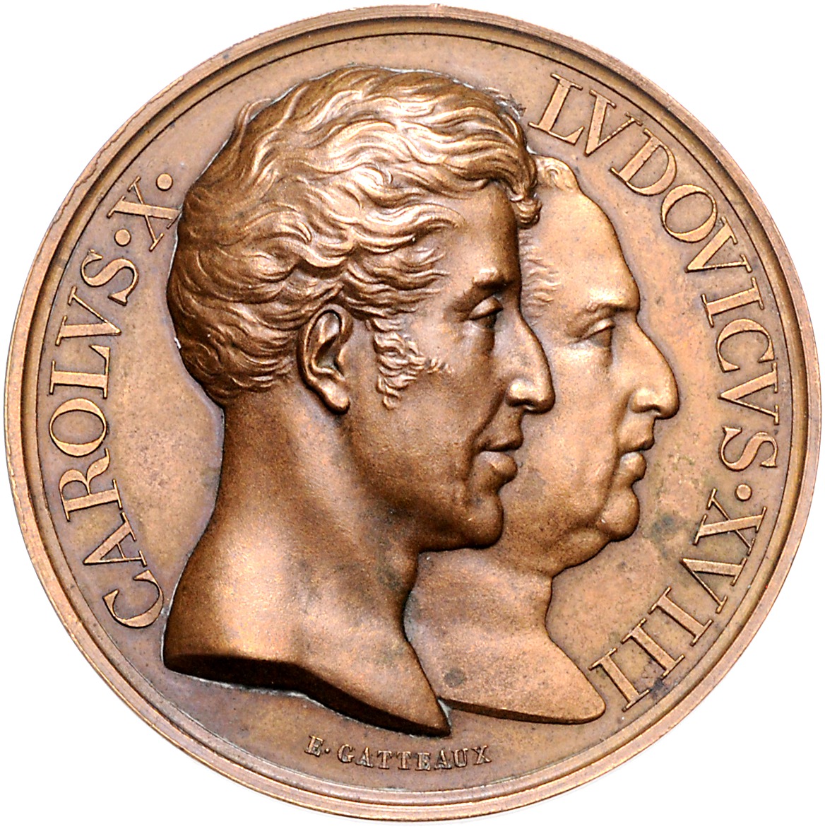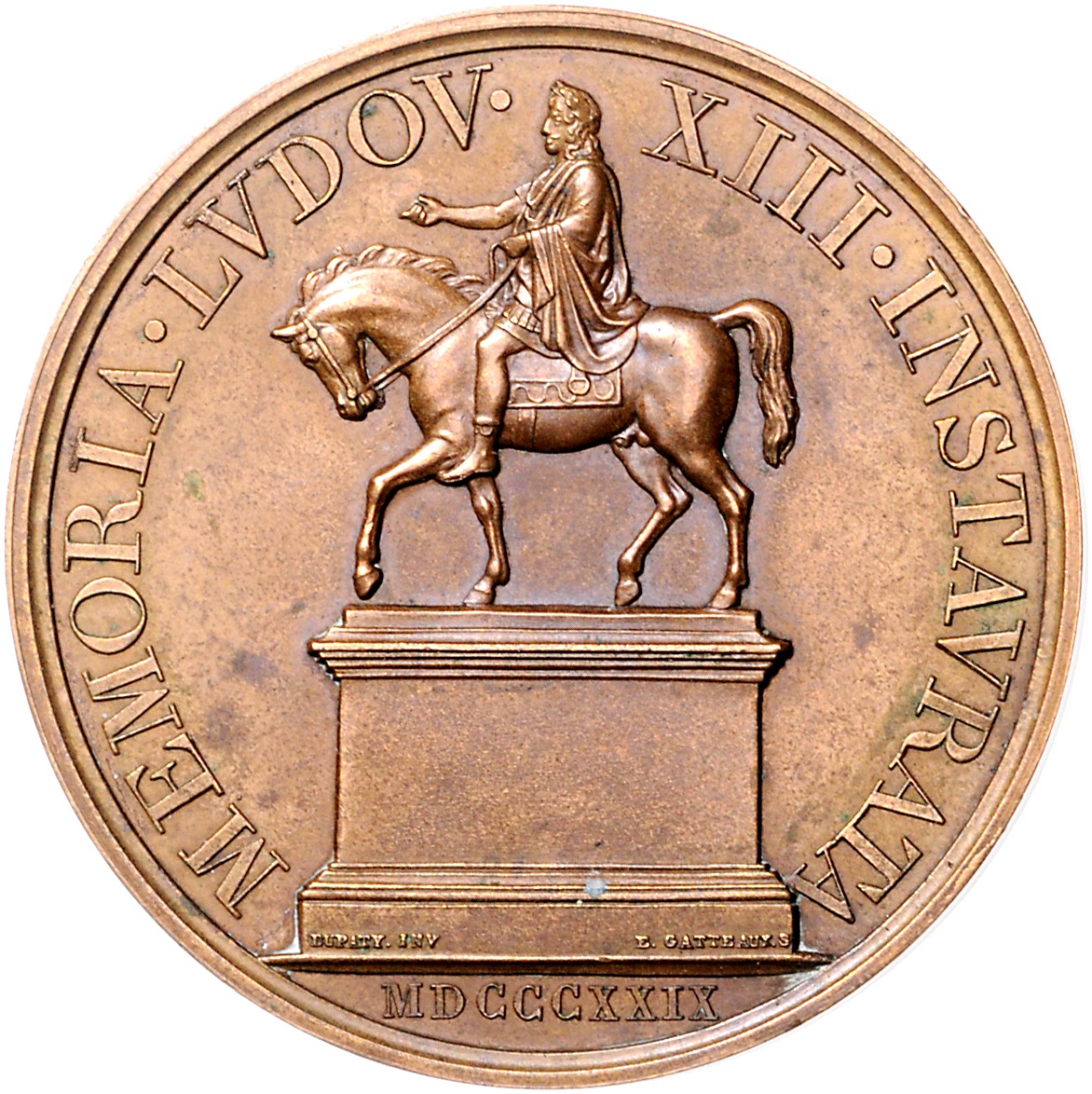Charles X. 1824-1830. Bronzemedaille 1829 (v. Gatteaux) auf die Errichtung des Reiterstandbildes für Ludwig XVIII. Wurzbach 4351, Coll. 576. 50,4 mm, 58,22 g. vz