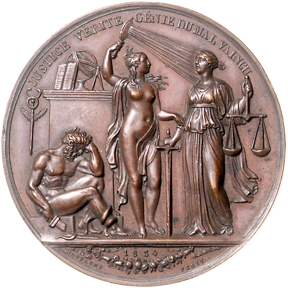 Louis Philippe I. 1830-1848. Bronzemedaille 1834 (v. Montagny) BELLA FRANGET VERITAS (Die Wahrheit wird Kriege beenden). 41,2 mm, 27,71 g. vz
