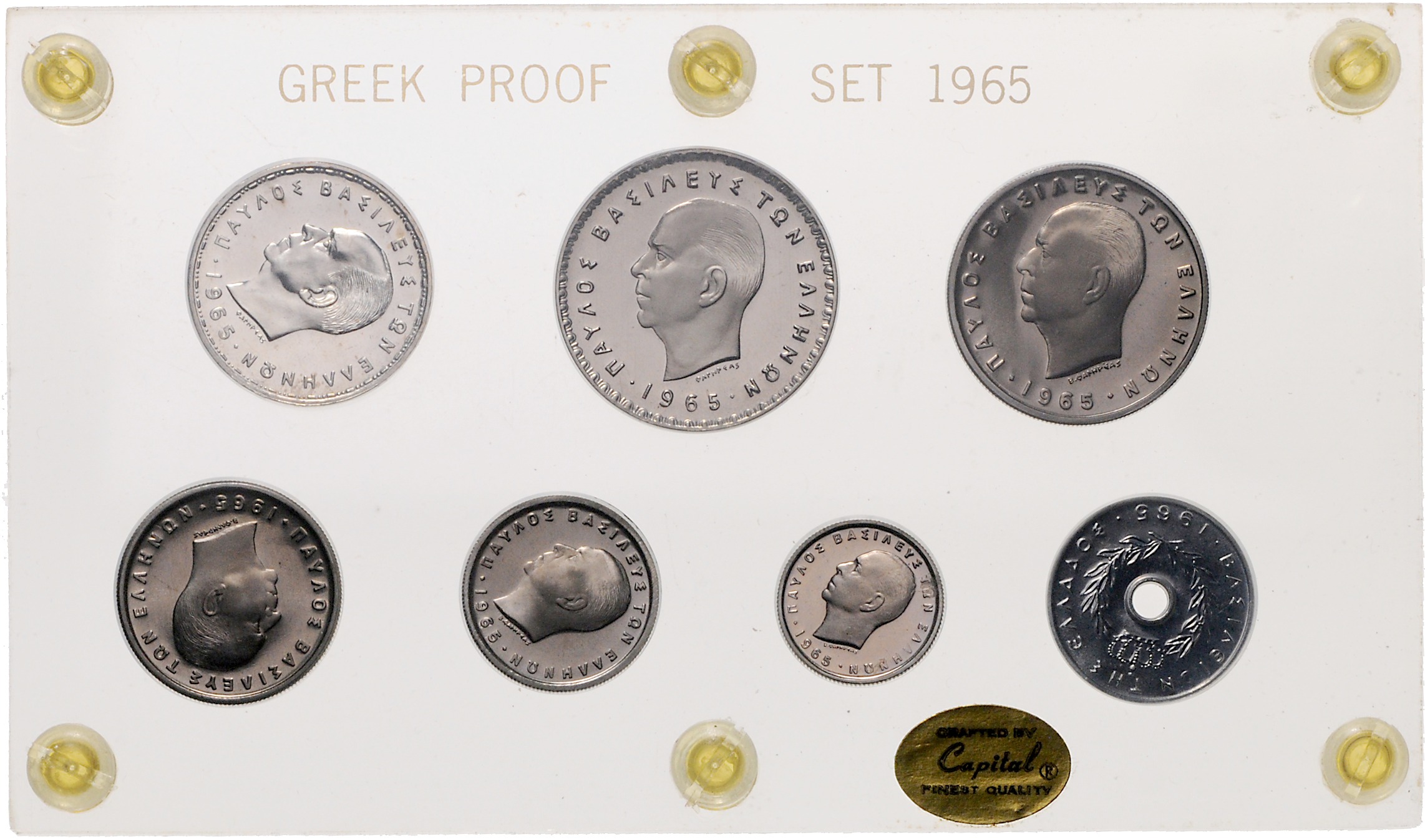 Constantine II. 1964-1973. Kursmünzensatz 1965. K.M. PS1. in Originalverpackung. Auflage 4987 Exemplare. PP
