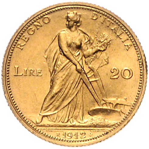 Vittorio Emanuele III. 1900-1946. 20 Lire 1912 R - Rom. K.M. 48, Friedberg 28, Pagani 667. 6,47 g. vz-