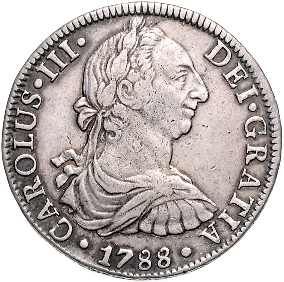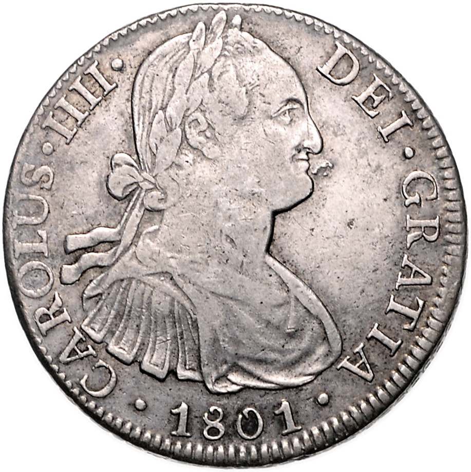 Lots. Lot von 3 Stücken: 8 Reales 1788 FM, 1801 FT und 1885 MH. K.M. 106.2a,109,377.10. ss