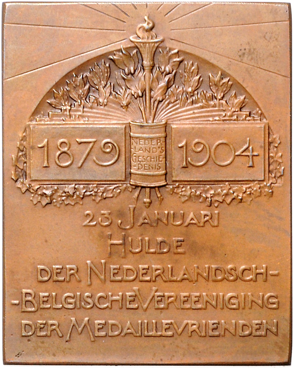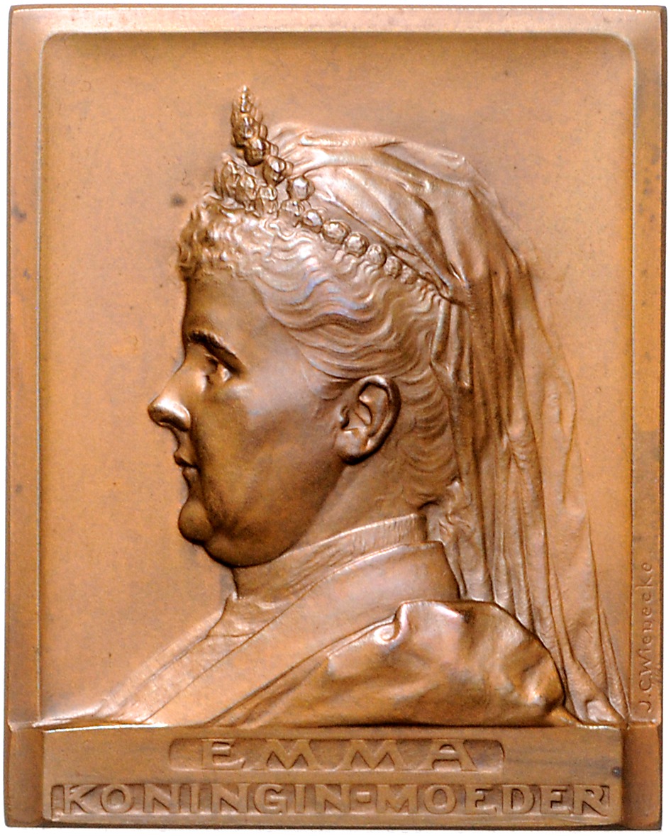 Wilhelmina I. 1890-1948. Bronzeplakette 1904 (v. Wienecke) auf das 25. Jubiläum von Emma, Königinmutter. 40x50mm 78,27 g. vz