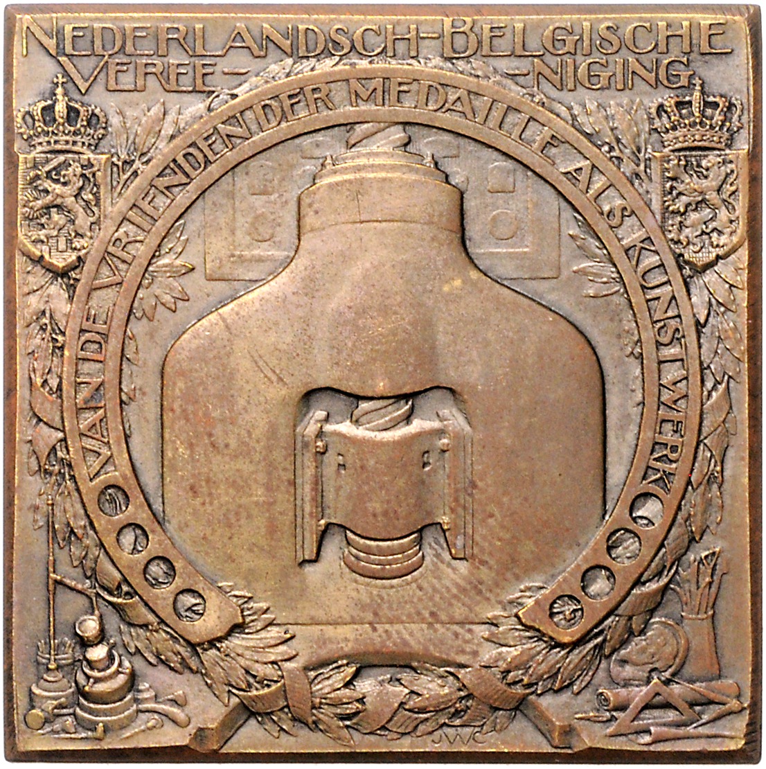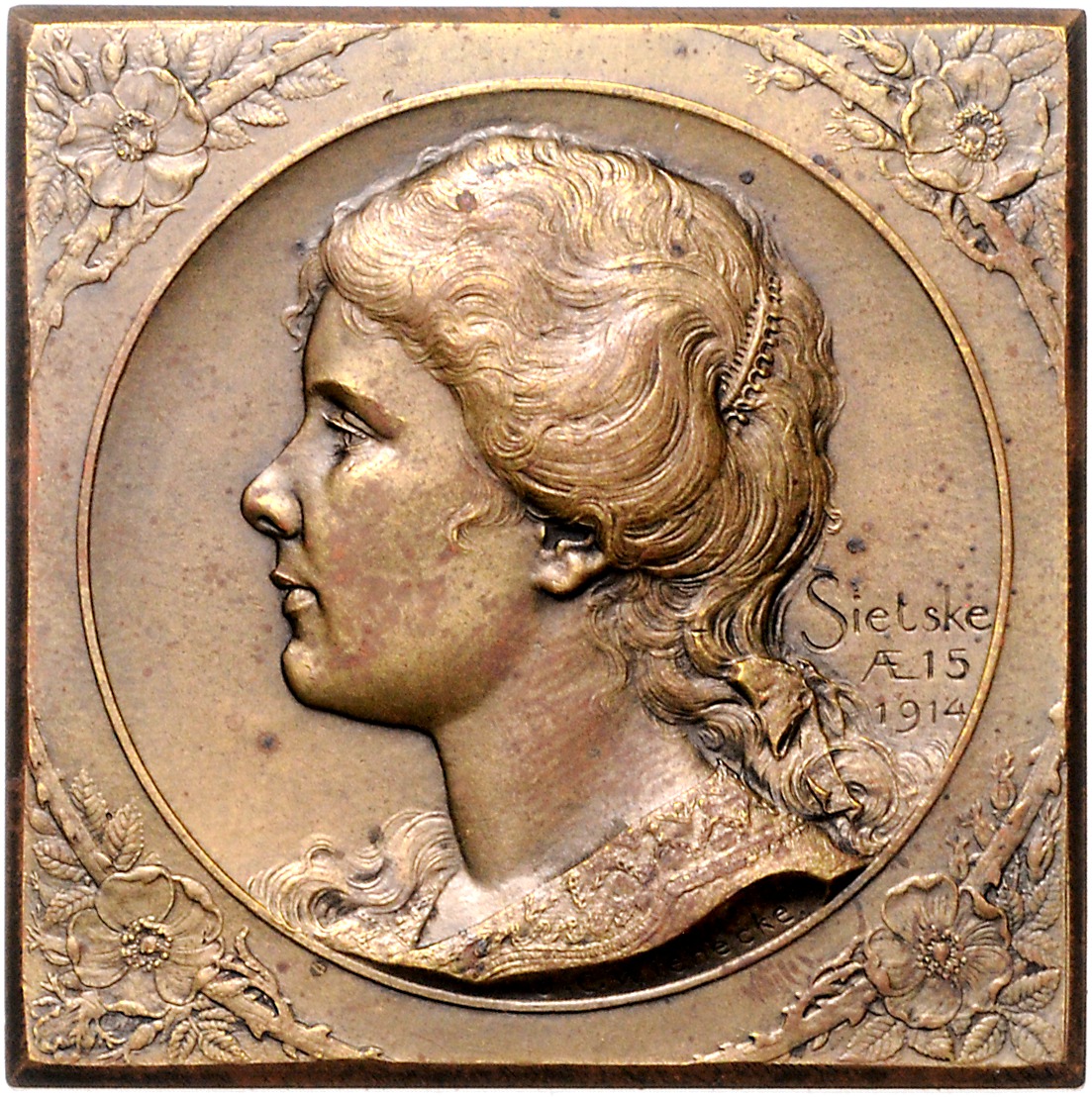 Wilhelmina I. 1890-1948. Bronzeplakette 1914 (v. Wienecke) auf Wieneckes Tochter Sietske. 48x48mm 61,96 g. vz