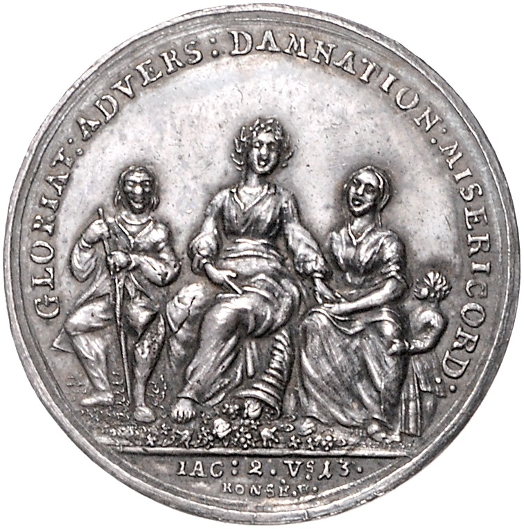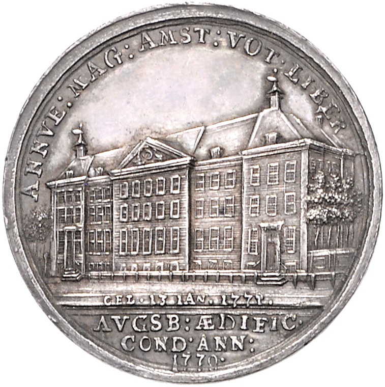 Silbermedaille 1771 (v. Konse) auf die Einweihung des ev. Diakoniehauses, van Loon 461. schöne Patina 32,5 mm, 9,34 g. vz