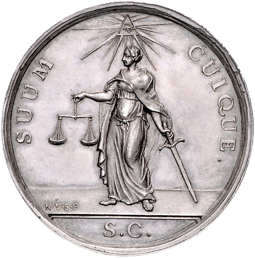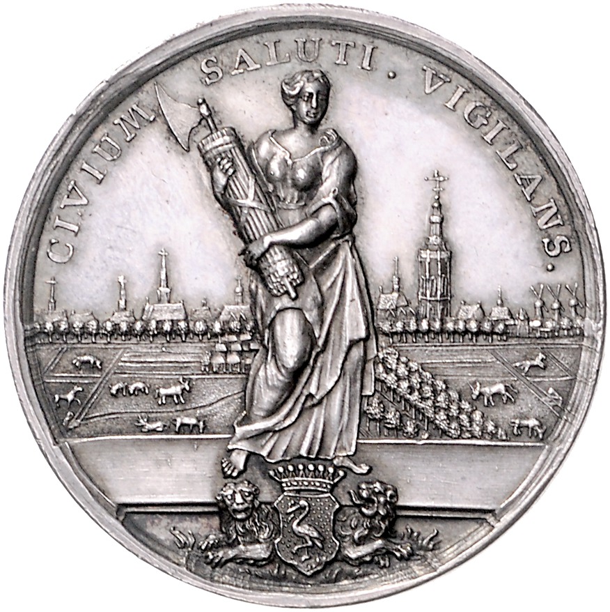 Silbermedaille o.J. (um 1750 v. van Swinderen) auf die Sicherheit der Bürger. 37,4 mm, 20,66 g. vz