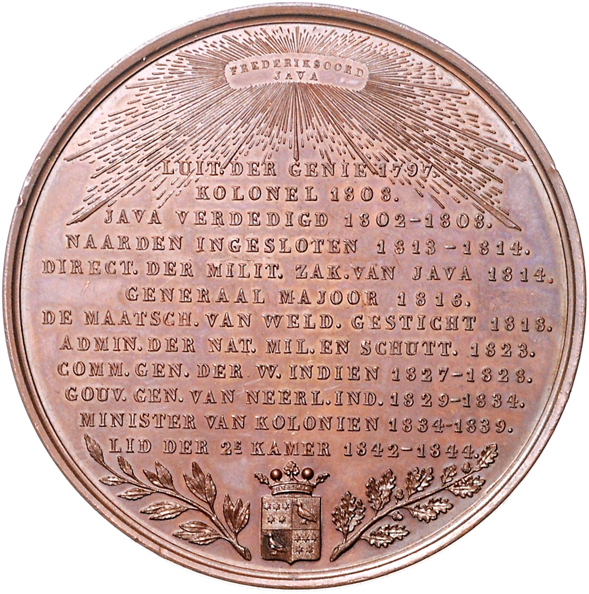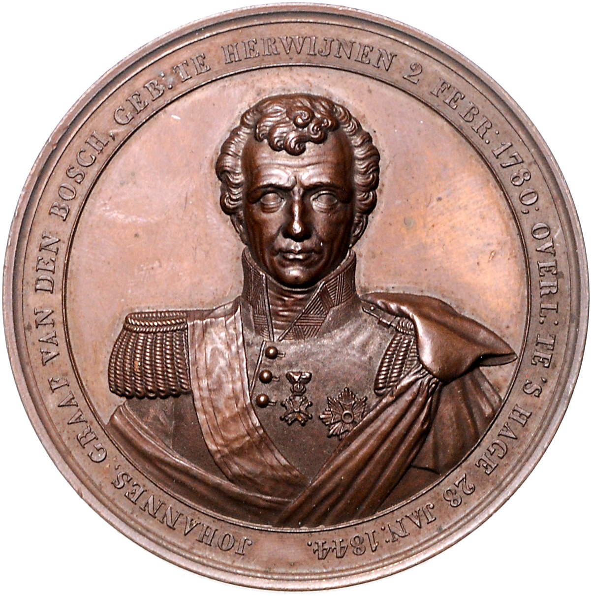 Willem II. 1840-1849. Bronzemedaille 1844 auf den Tod des holländischen Generalgouverneurs von Niederländisch-Indien, Johannes Graf van den Bosch. Dirks 625. 52,0 mm, 65,85 g. vz