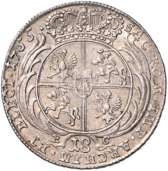 August III. 1733-1766. 18 Gröscher 1755 EC. Schön 20. ss